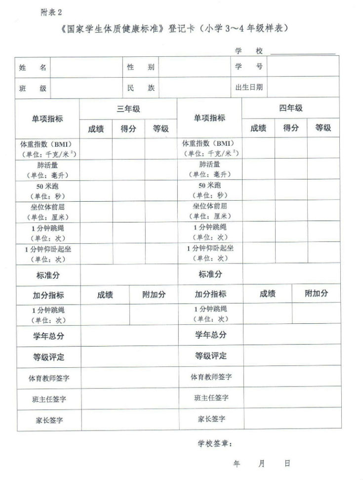附件下载:→《国家学生体质健康标准》登记卡(小学3-4年级表格).docx
