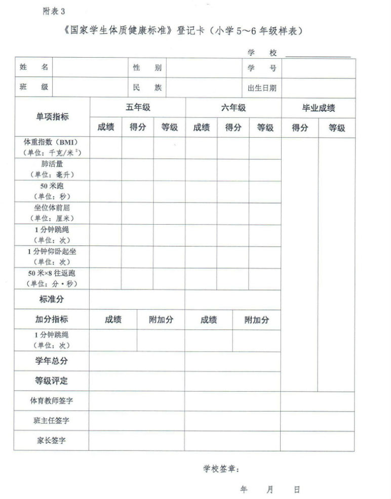 附件下载:→《国家学生体质健康标准》登记卡(小学5-6年级表格).docx