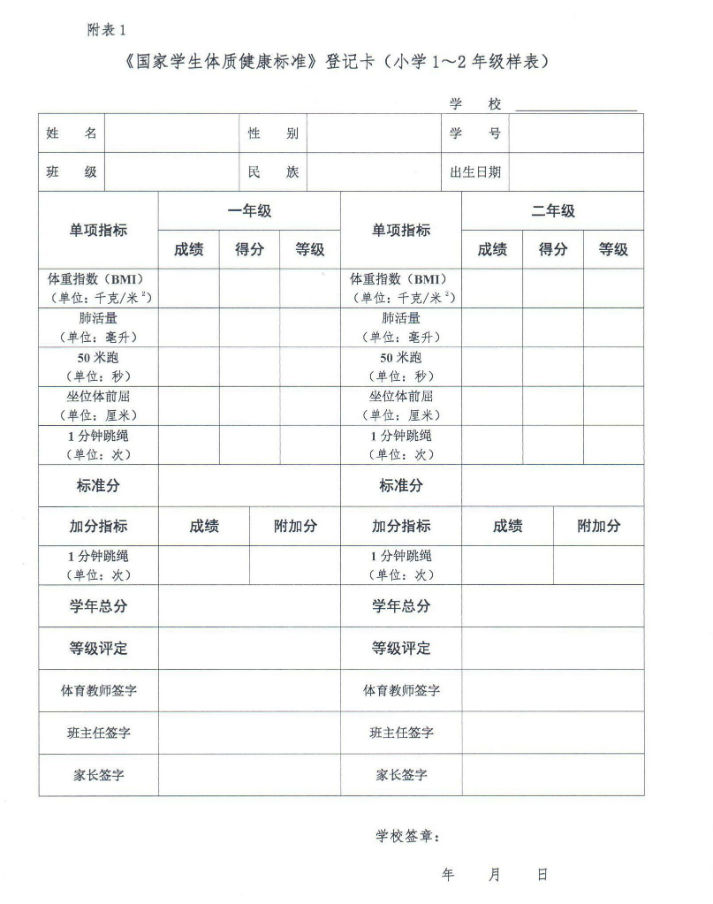 附件下载:→《国家学生体质健康标准》登记卡(小学1-2年级表格).docx