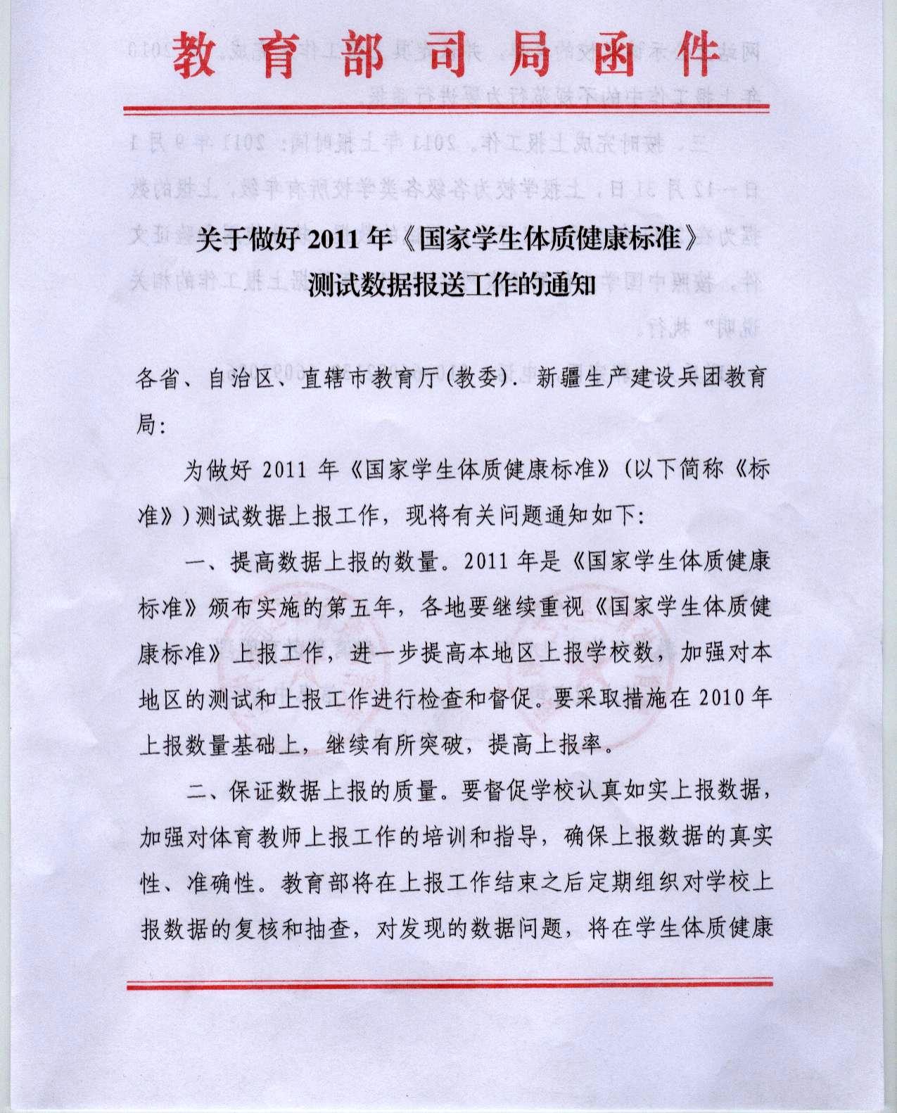 关于做好2011年《国家学生体质健康标准》数据报送工作的通知