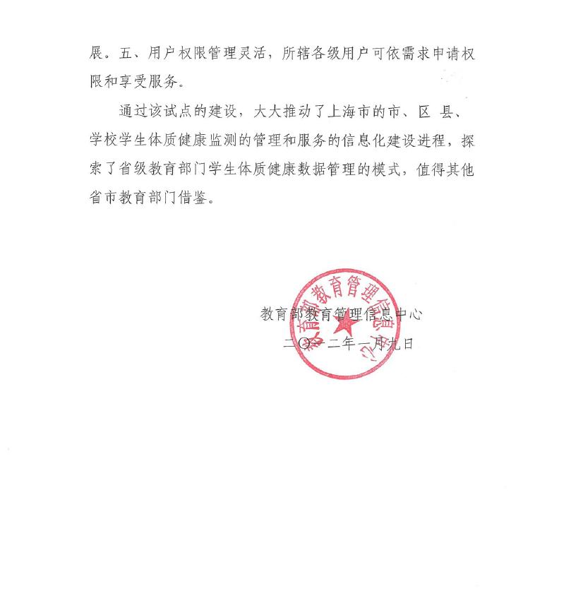 上海市《国家学生体质健康标准》数据上报管理系统试点建设项目评估报告