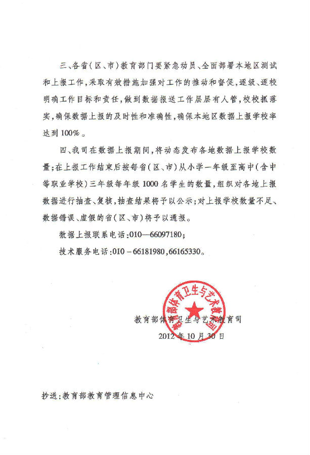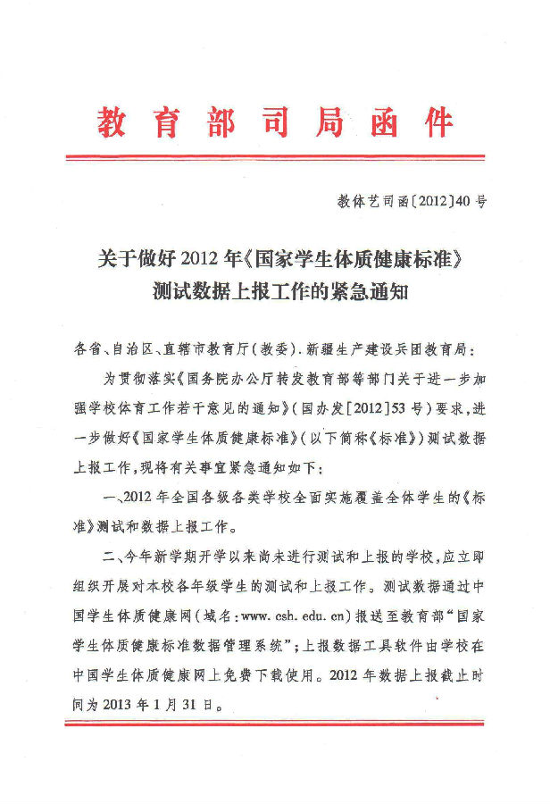 关于做好2012年《国家学生体质健康标准》测试数据上报工作的紧急通知